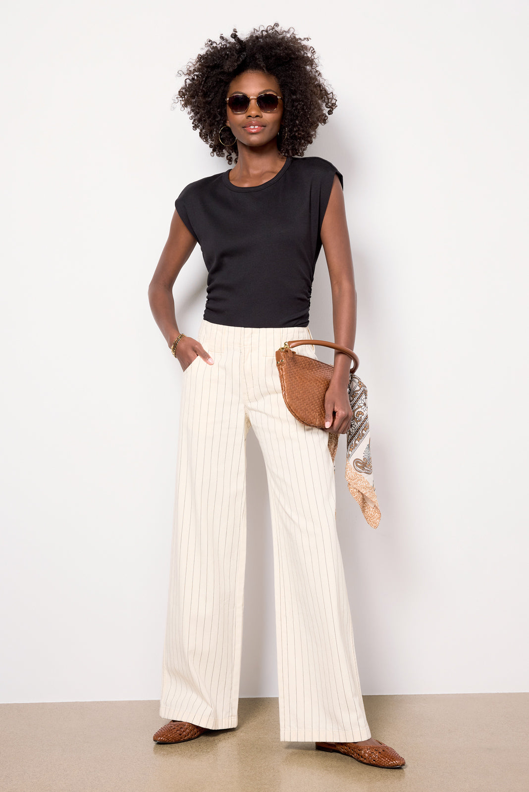 A versatile wardrobe staple. the Joni top by Michael Stars is cut from soft rib knit fabric and features a slim-fit silhouette with a slightly cropped length. strong shoulder design. and ruched sides for a flattering touch??perfect for day-to-night wear.